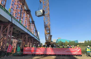 阿斯塔纳市轻轨一期跨伊希姆河拱桥合龙