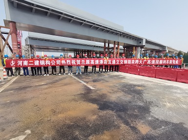 兰原跨“大广高速公路”潘店互通立交钢箱梁桥顺利跨越