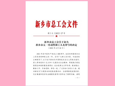 开云手机入口李世伟同志被授予新乡市五一劳动奖章