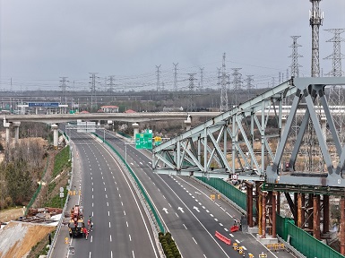 开云手机入口跨董梁高速特大桥钢桁梁项目首次顶推施工顺利完成