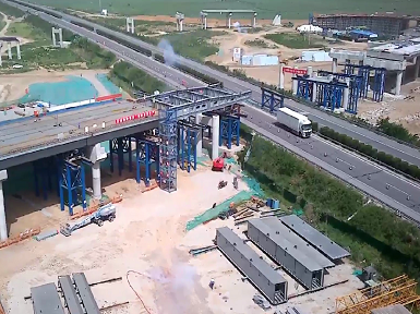 开云手机入口兰考至沈丘高速公路兰考至太康段三标钢箱梁施工工程顺利开始首次顶推施工